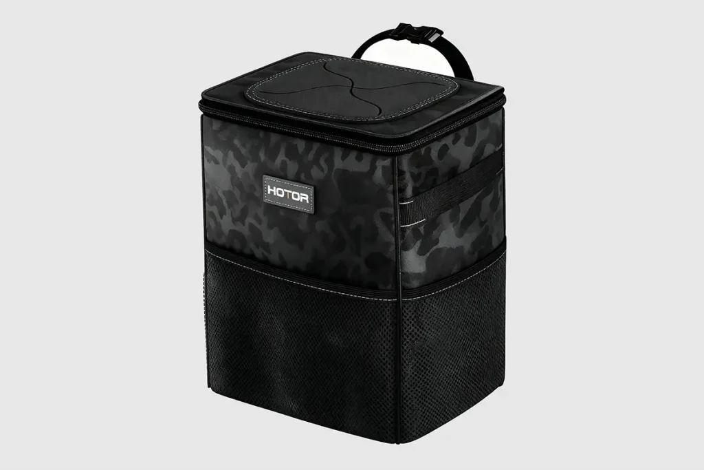 My favorite feature is the top closure. You can just drop trash in without having to mess with a lid every single time. It keeps everything out of sight, but you don’t have to think about it. That small detail makes a big difference, especially when you’re driving and don’t want to fumble around.
